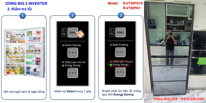 Kiểm tra mã lỗi tủ lạnh Hitachi dòng Big 2 Glass Inverter